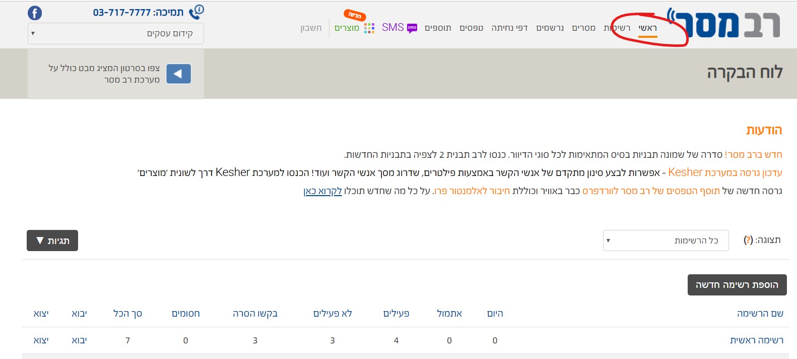 אחרי שאתם נרשמים תגיעו למסך הפתיחה של רב מסר: