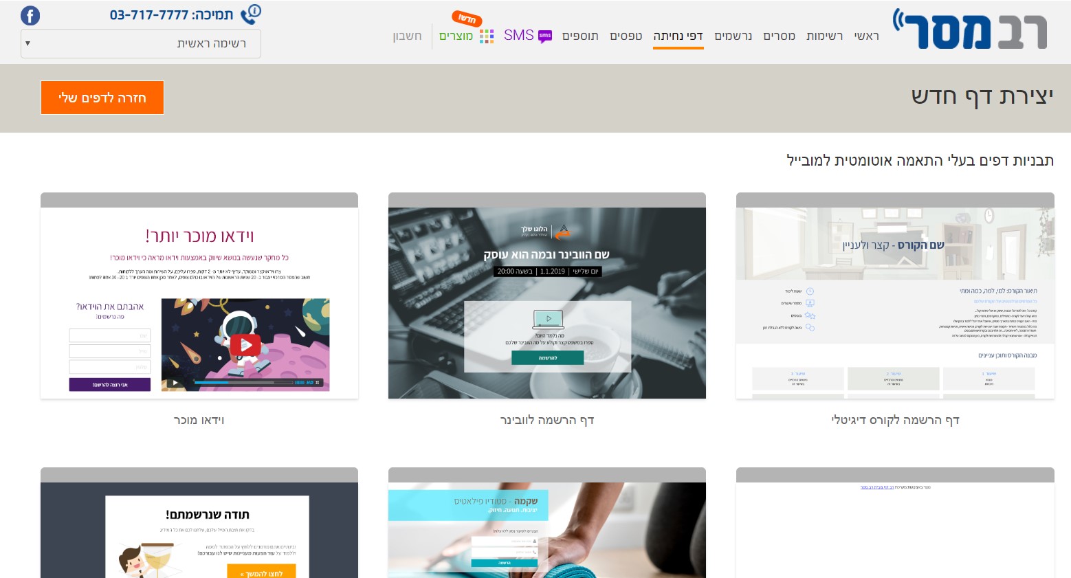 נגיע לעמוד עם תבניות של דפי נחיתה.